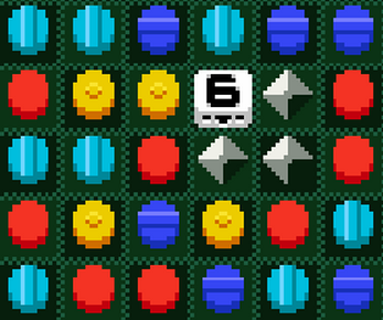 This is a rare kind of Match 3 game. Move Mr Swap With Coins to swap places with coins. You must make a match within 6 moves.