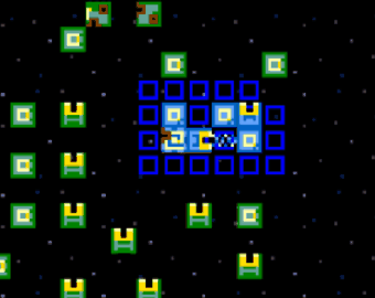 A turn based shoot-em-up with a ship made of blocks stealing blocks.
